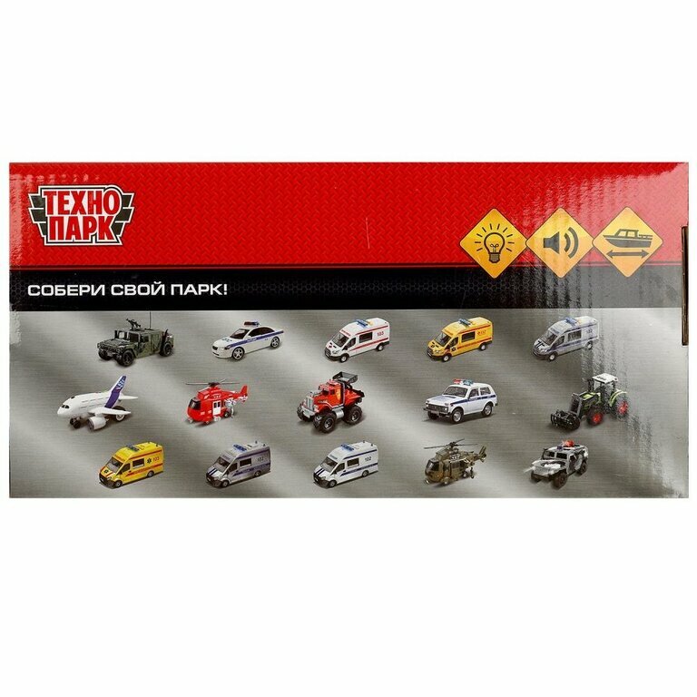 Игрушки для мальчика Транспортный корабль 17 см и Газель скорая помощь 8 см, Технопарк, металлический корпус, подвижный кран, открывается люк, свет и звук