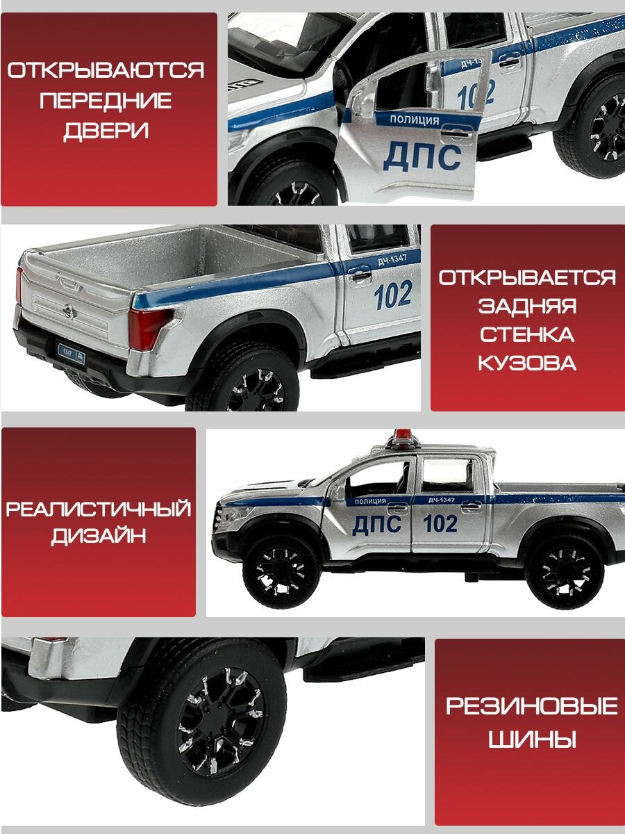 Машинка игрушка детская для мальчика Nissan Titan Warrior Полиция Технопарк детская модель металлическая коллекционная инерционная с открывающимися дверьми серебристая 12,5 см