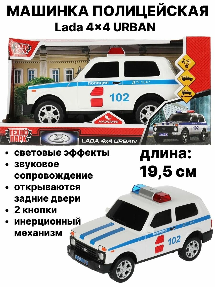 Купить Модель URBANBLACK-20PLPOL-WH LADA 4x4 URBAN полиция 19,5 см,2 кноп, инерц Технопарк в кор