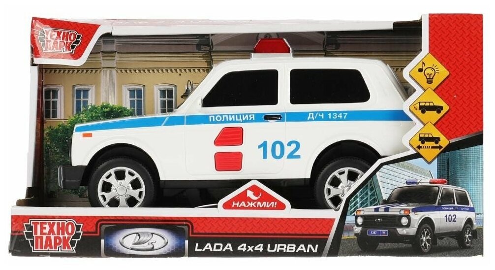 СохранитьМодель URBANBLACK-20PLPOL-WH LADA 4x4 URBAN полиция 19,5 см,2 кноп, инерц Технопарк в кор интересное: