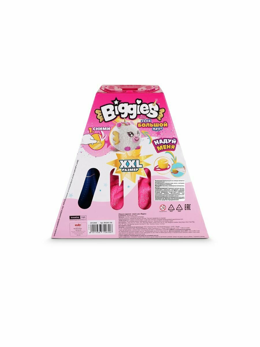 Мягкая игрушка - мяч BIGGIES BIG001-UN надувной зверек шар - единорог с насосом в наборе