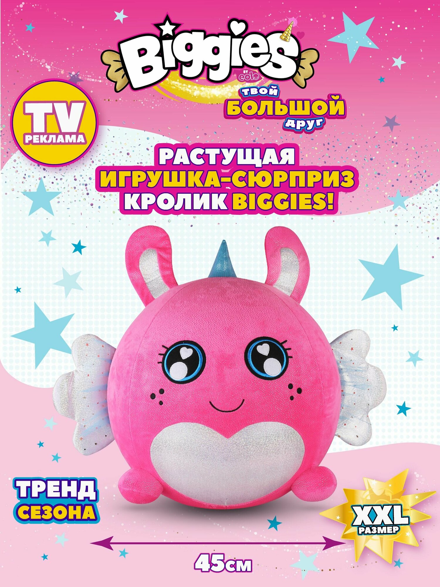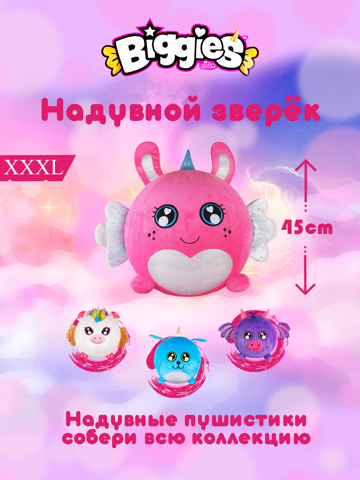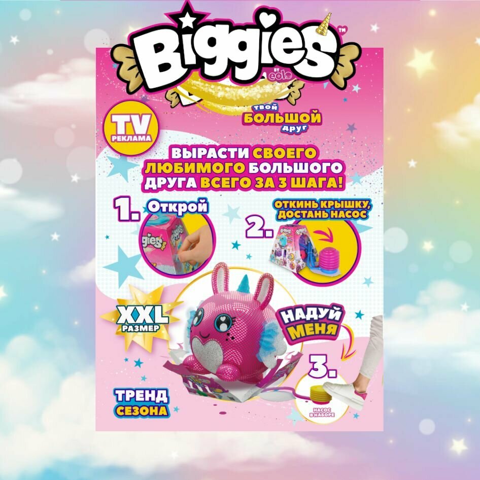 Мягкая игрушка Biggies единорог растущий после вскрытия белый 45 см / биггис