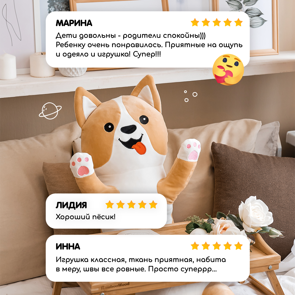 Ниже Вы можете прочитать отзывы на Мягкая игрушка подушка Totty toys Собака корги батон 90 см, ознакомится с подробными характеристиками, посмотреть интересные обзоры и фотографии на Мягкая игрушка подушка Totty toys Собака корги батон 90 см.