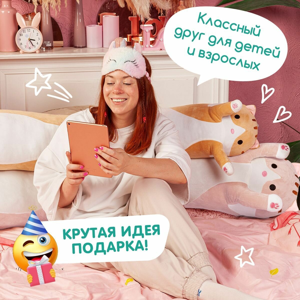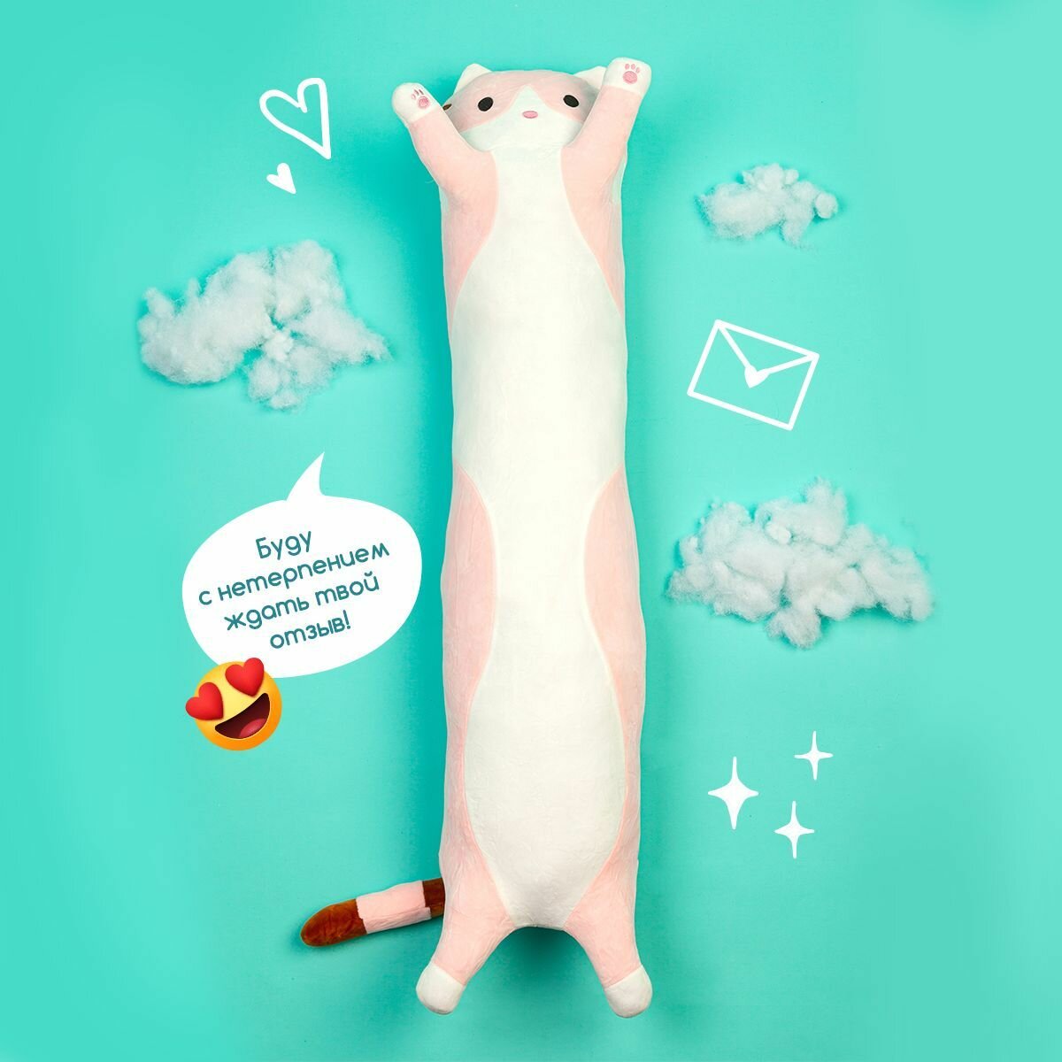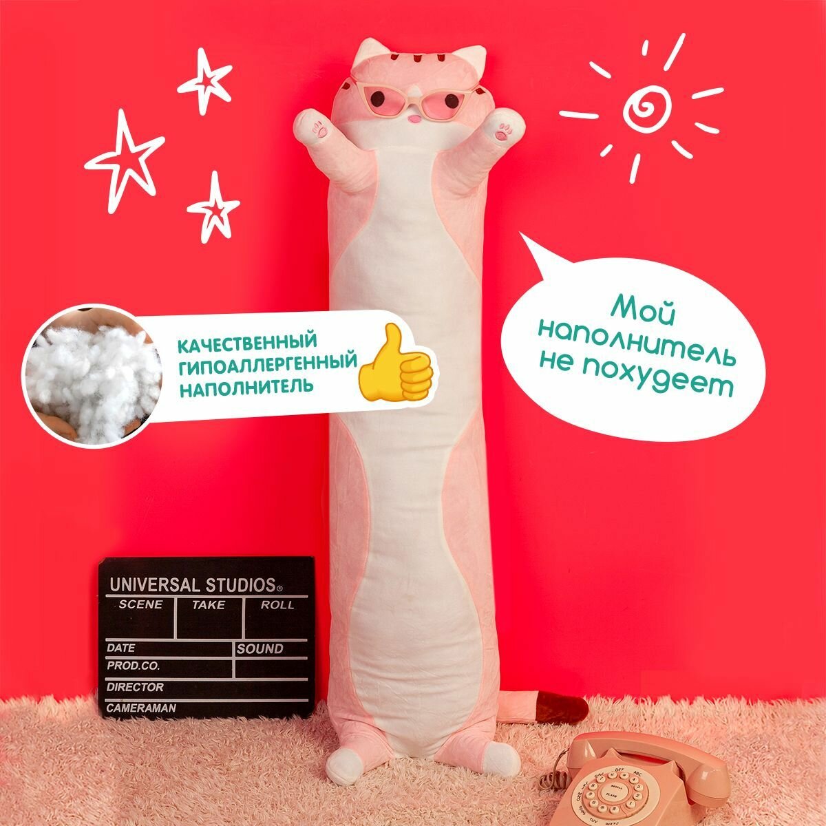 Мягкая игрушка подушка Totty toys длинный кот батон 110 см, розовый