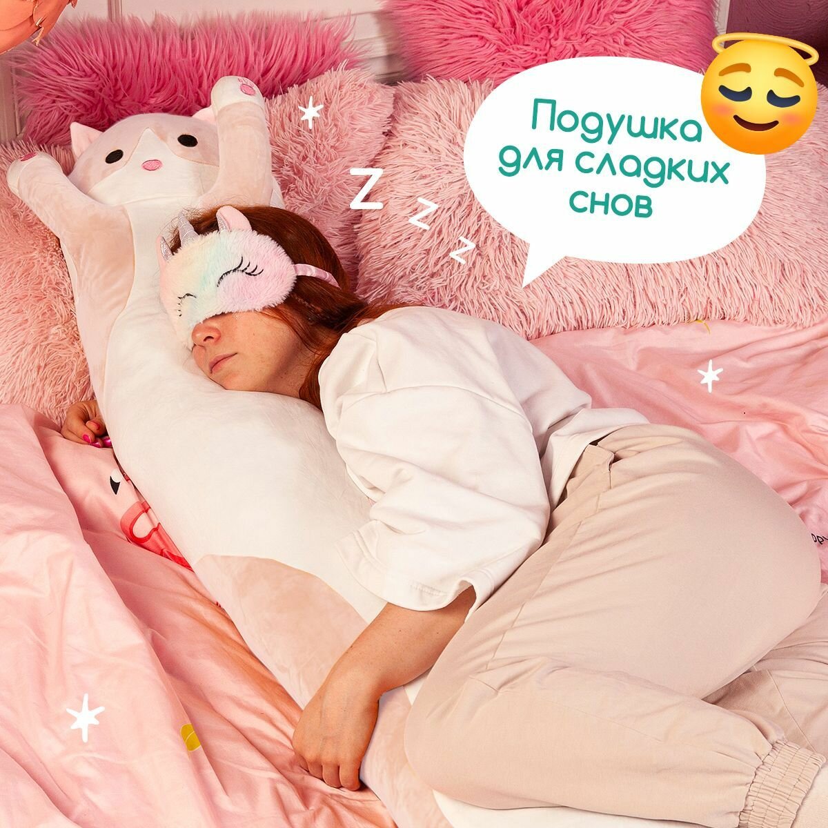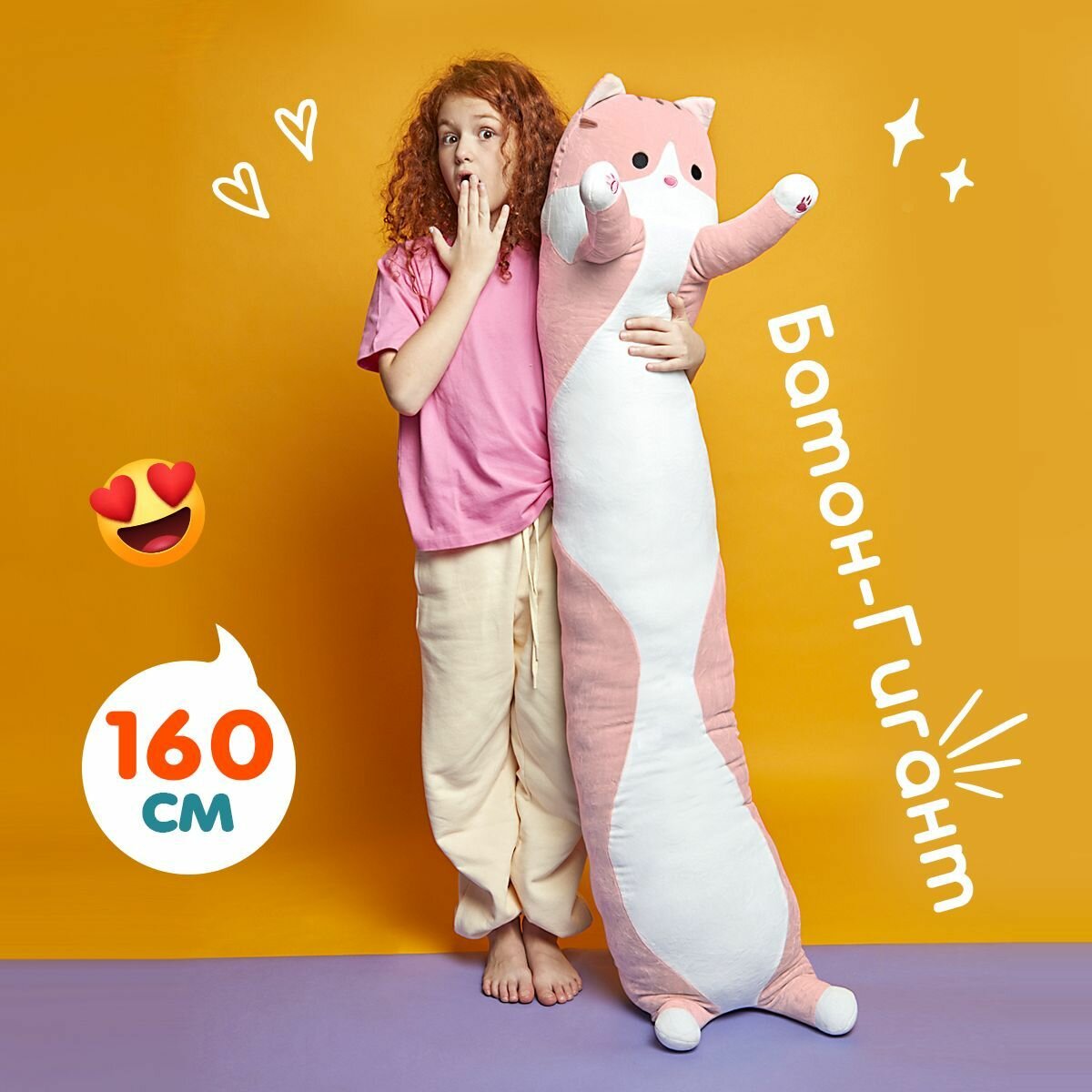 Купить Мягкая игрушка подушка Totty toys длинный кот батон 160 см, розовый