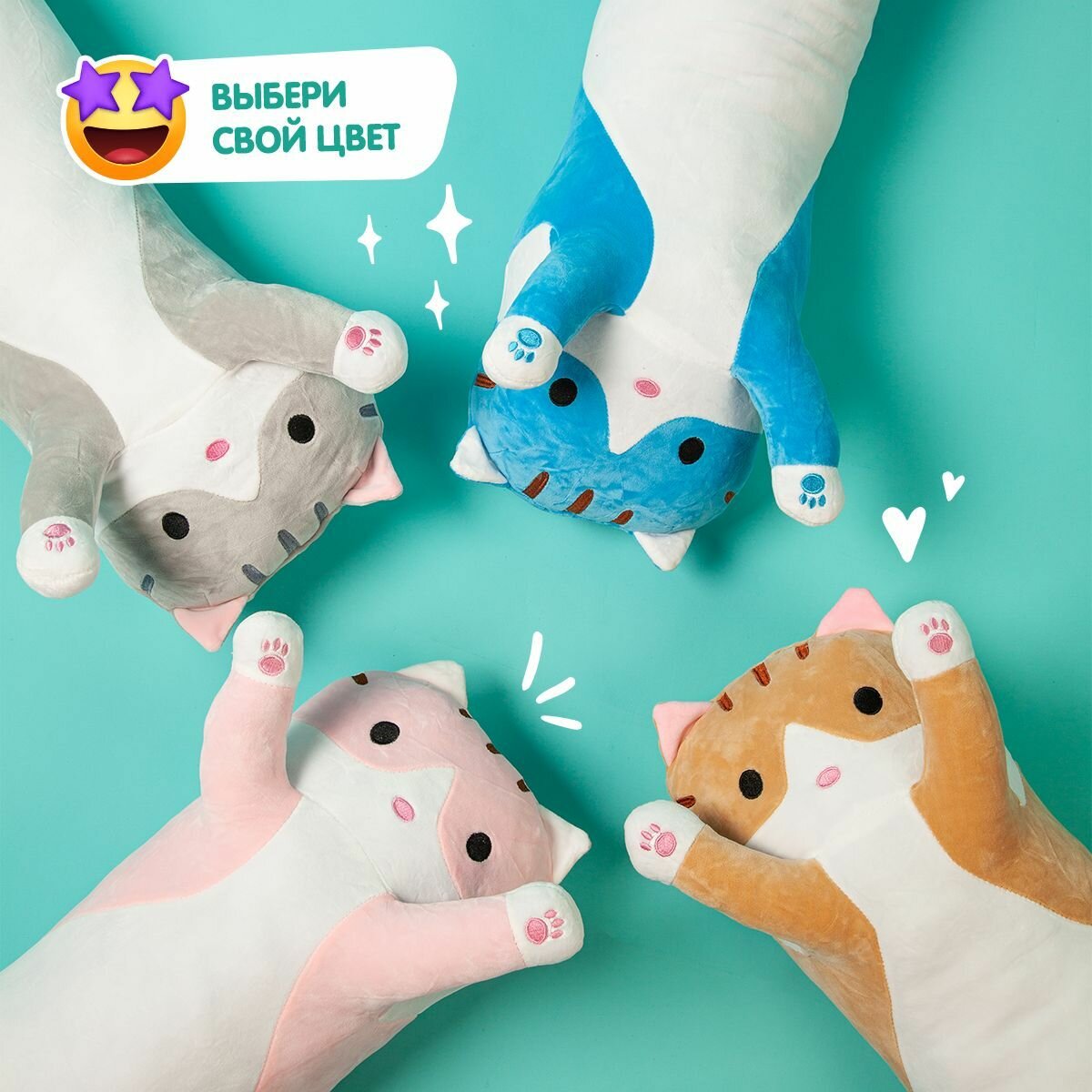 Мягкая игрушка подушка Totty toys длинный Кот батон 110 см, британец серый с голубыми глазами