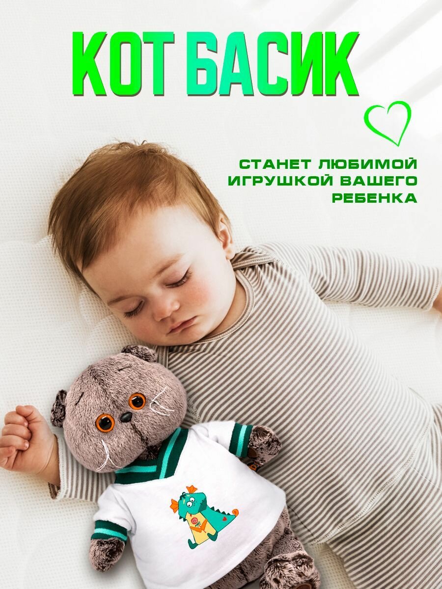 Мягкая игрушка Budi Basa Кот Басик в футболке с дракончиком 22 см .