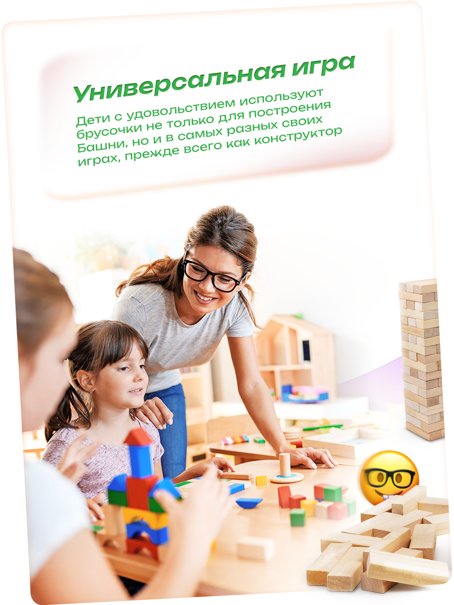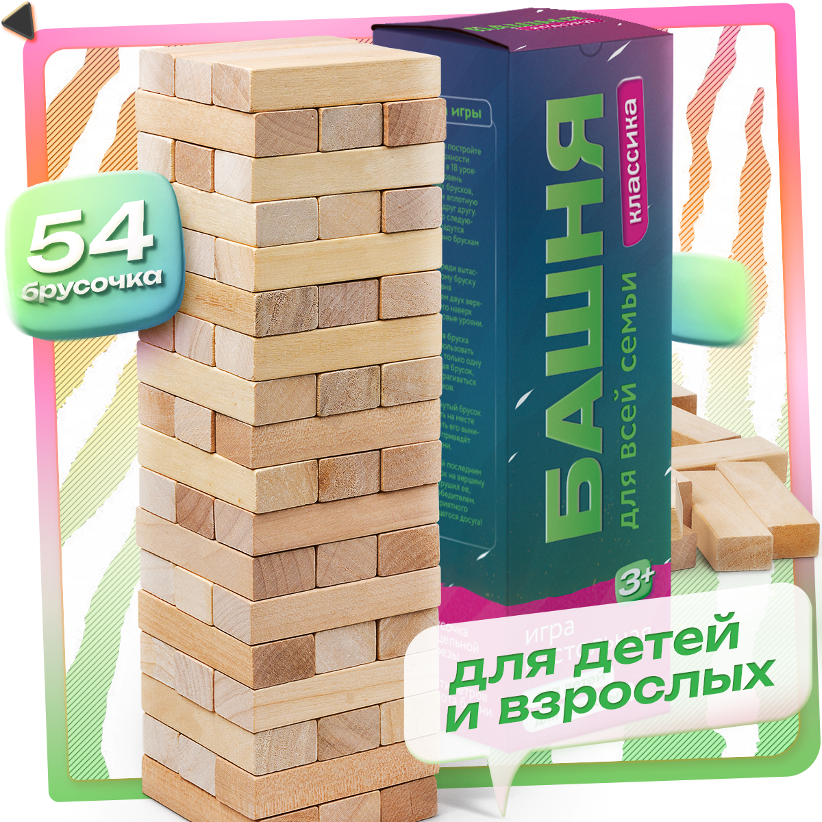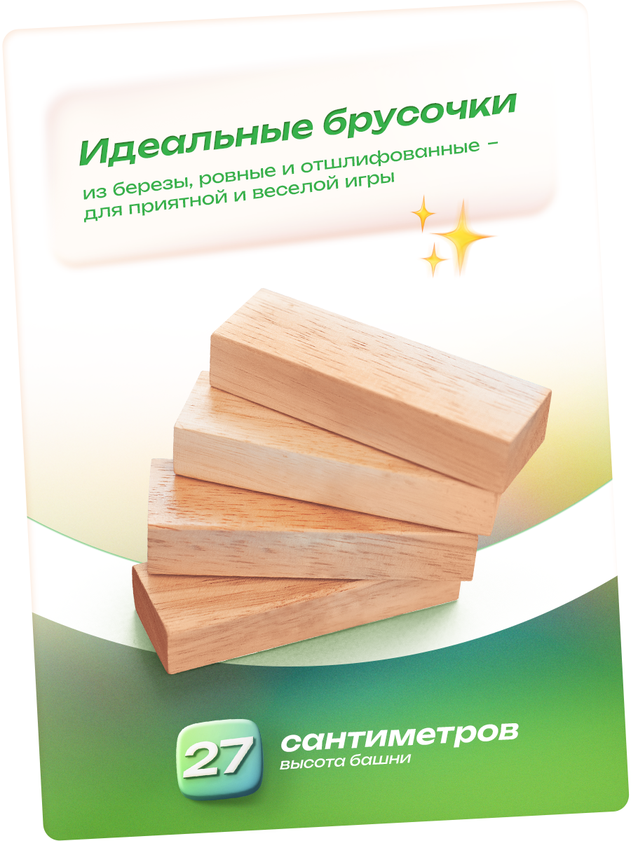 | Комплектация | 54 деревянных бруска, картонная коробка |
