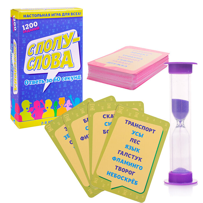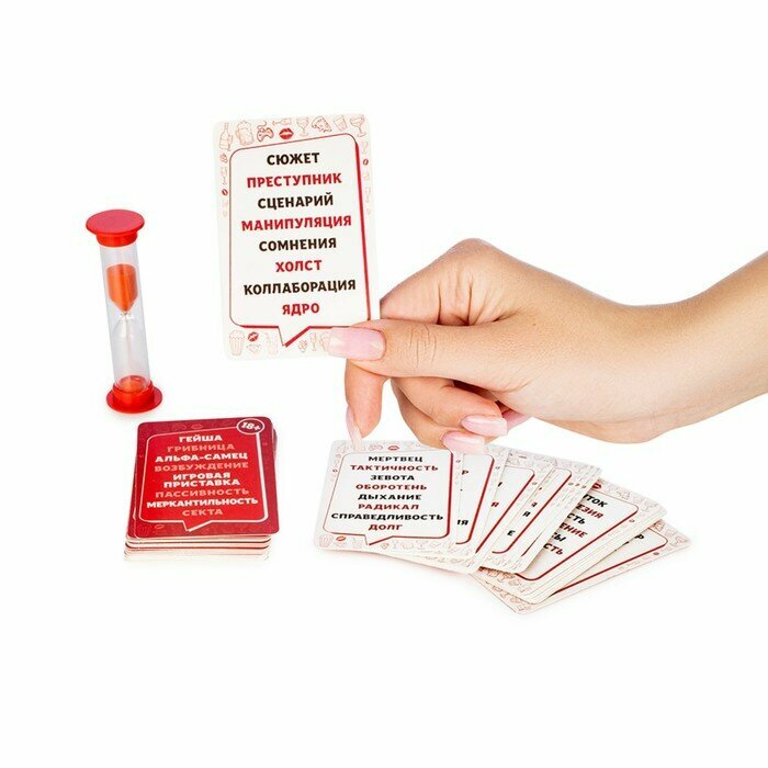 | Комплектация | игровые карточки - 75 шт.; правила игры - 1 шт.; песочные часы - 1 шт.; блокнот для очков - 1 шт |