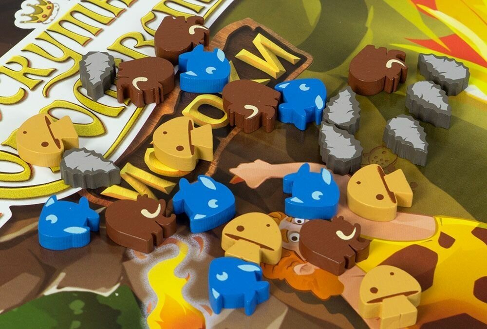 | Комплектация | 4 стартовых участка; 4 хижины (1 розовая, 1 жёлтая, 1 зелёная, 1 синяя); 8 деревянных фишек вождей племени (2 розовых, 2 жёлтых, 2 зелёных, 2 синих); 48 двусторонних прямоугольных участков (на одной стороне — ландшафт, на другой — число); 1 планшет пещеры; 22 тайла кроманьонцев; 4 тайла тотемов (мамонт, рыба, гриб, кремень); 49 деревянных фишек ресурсов (16 мамонтов, 13 рыб, 11 грибов, 9 кремней); 10 жетонов костра: 5 жетонов с одним костром, 4 — с двумя кострами, 1 — с тремя кострами; 1 блокнот для подсчёта очков; правила игры |