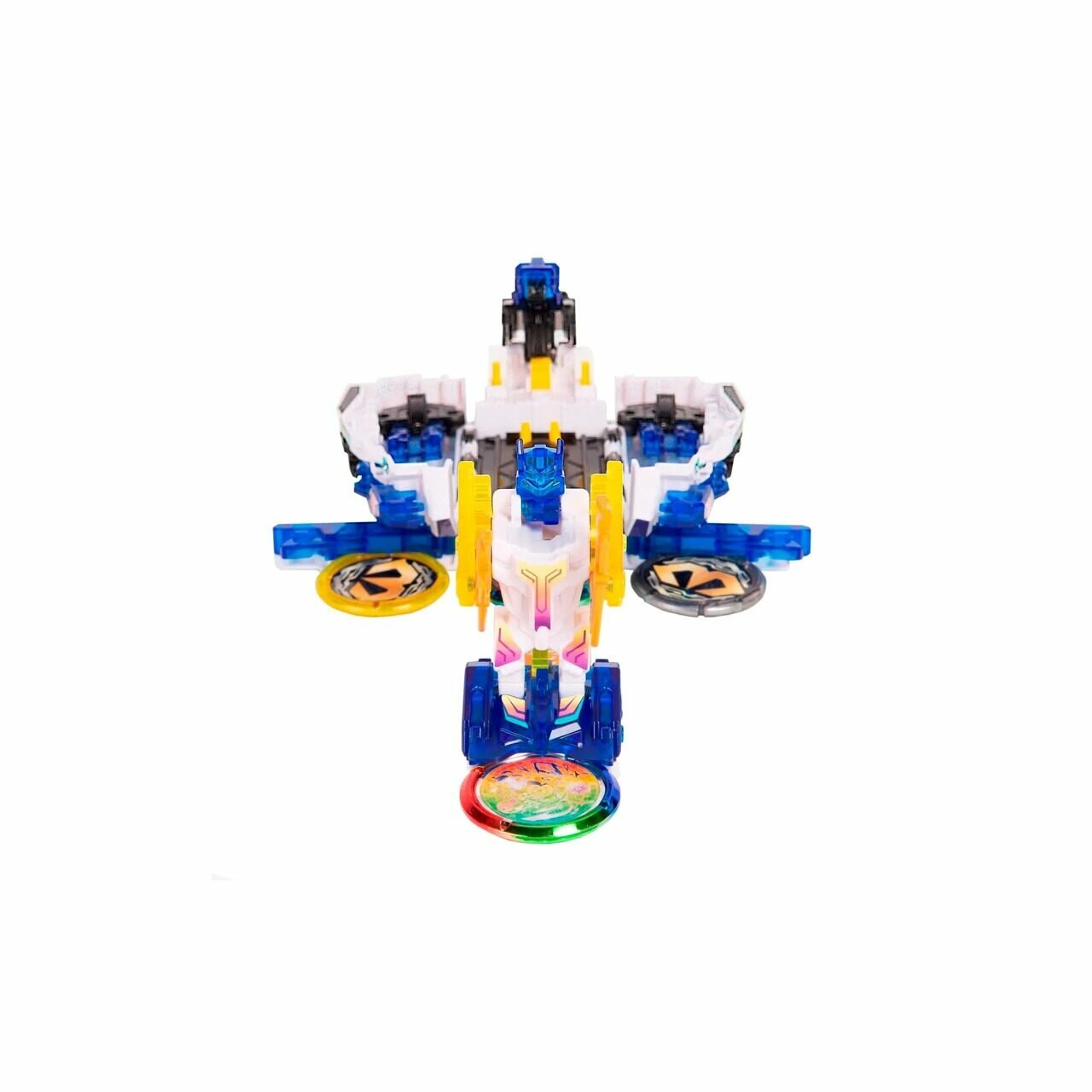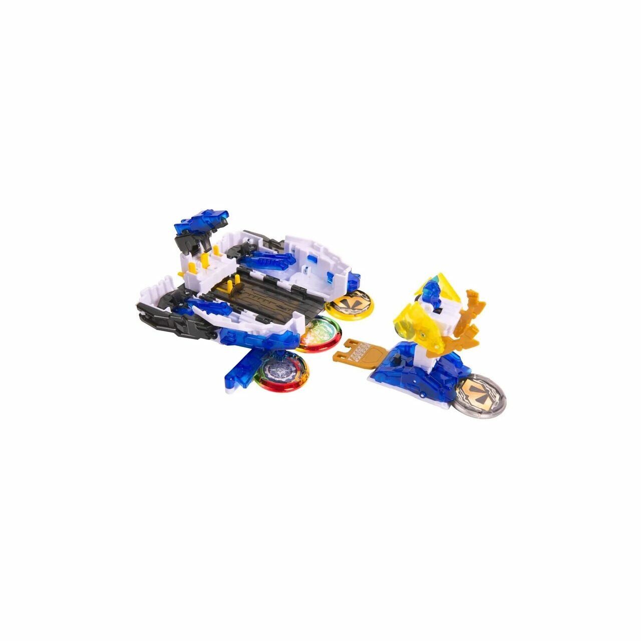 | Комплектация | 2 машинки-трансформера (станция 13 х 7 х 6 см, сателлит 8 х 4 х 3.5 см), 4 трансформационных диска диаметром 3 см, инструкция |