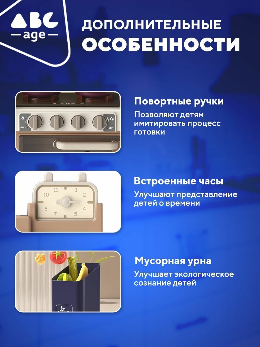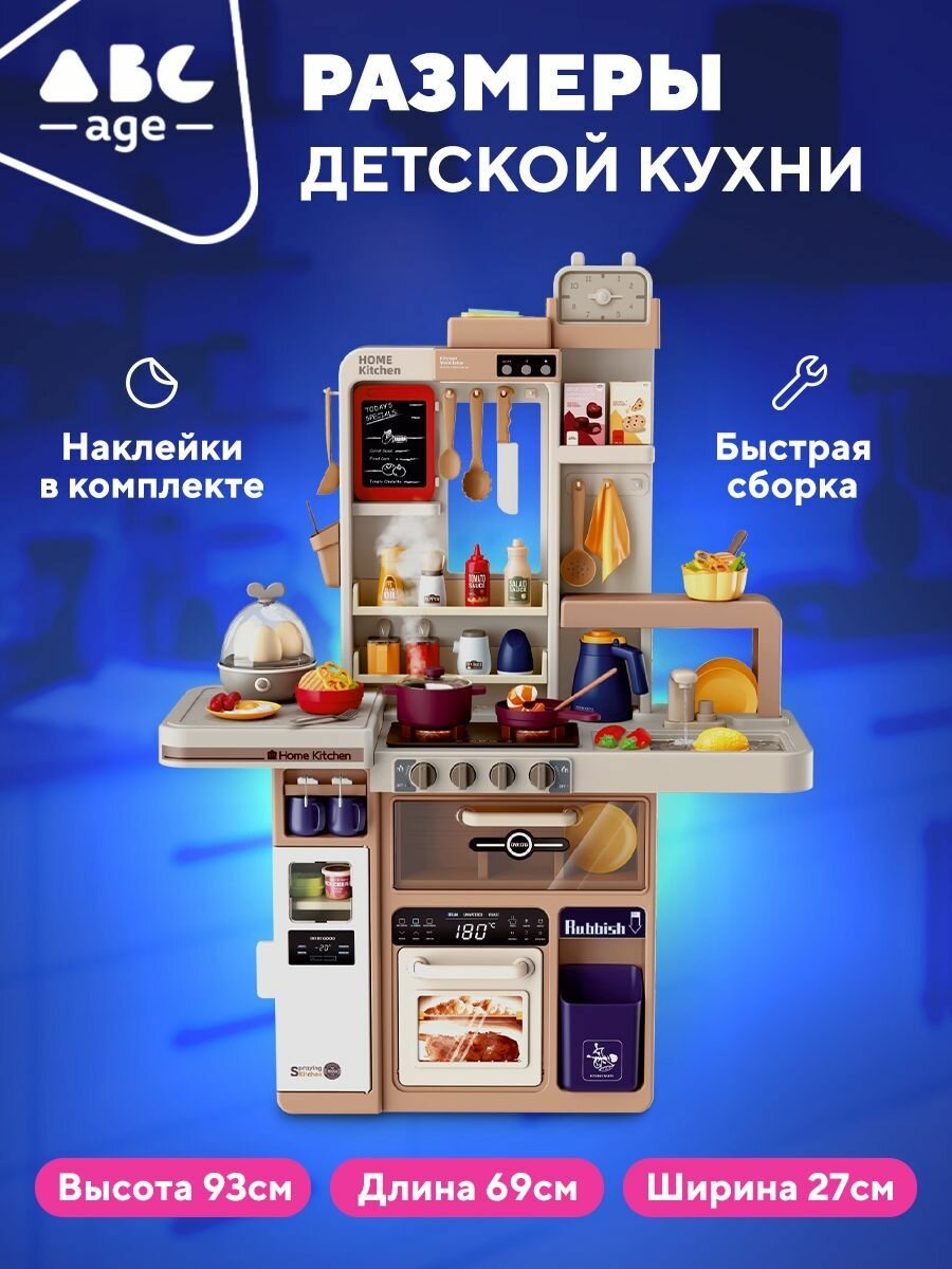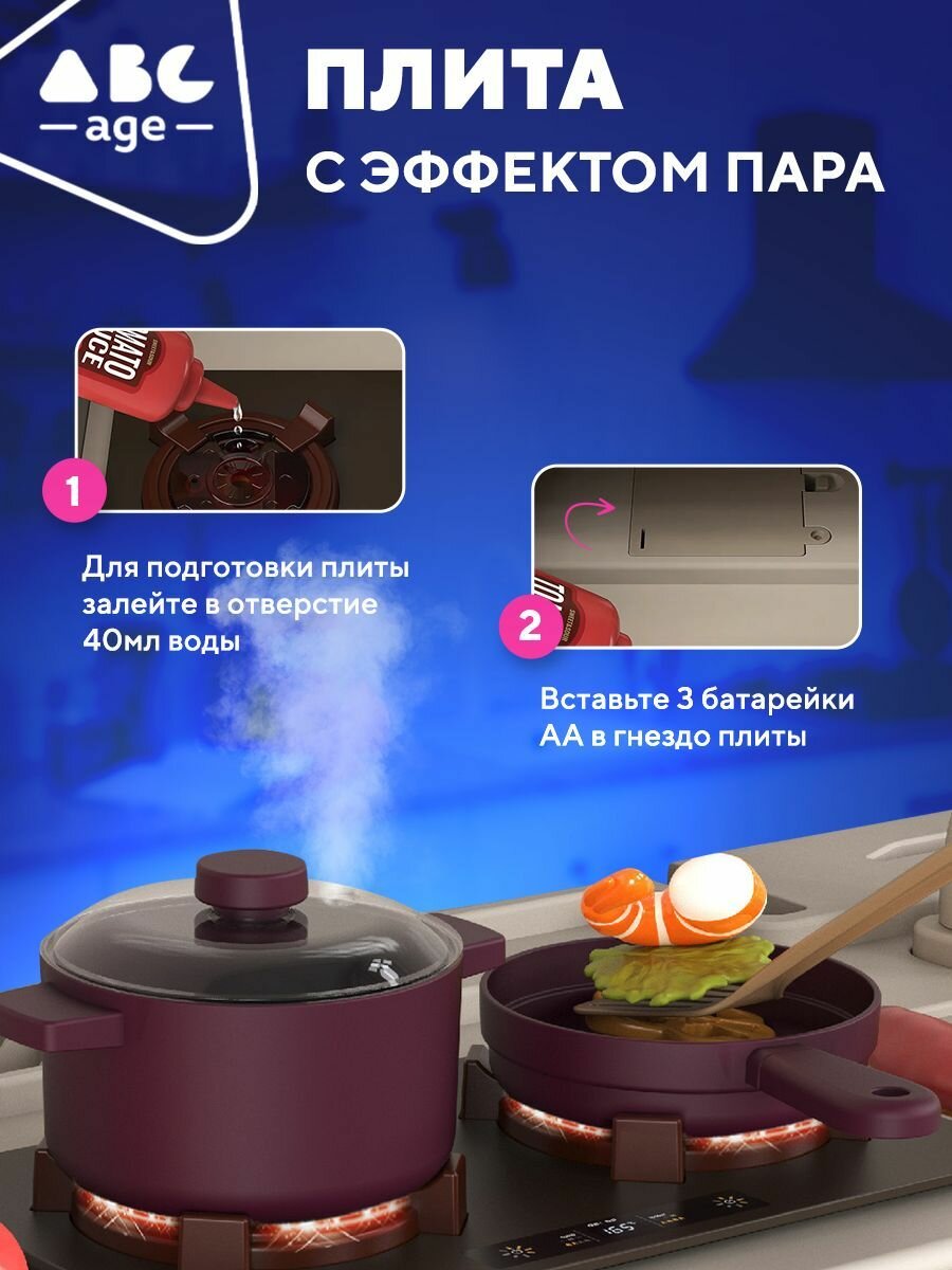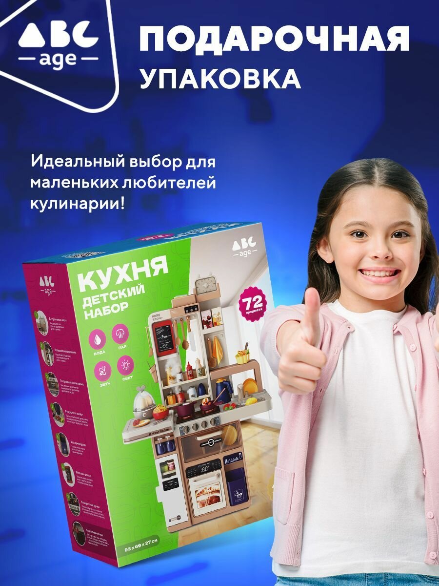 Детская игровая кухня abcAge, 72 Предмета, с подачей воды и пара интересное: