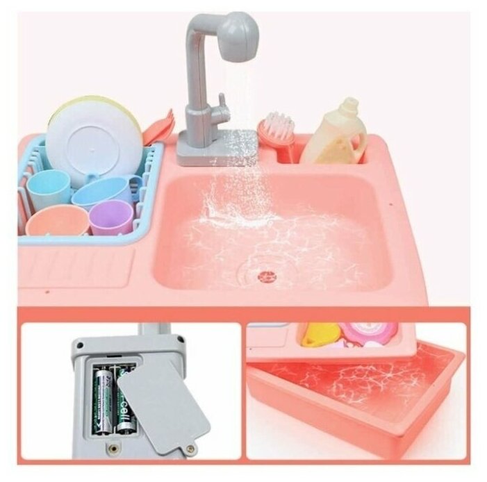 Детская кухня SITSTEP с интерактивной плитой (со звуком и светом), раковина с функцией вода, розовые фасады