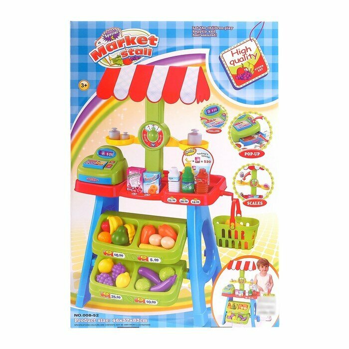 | В комплекте | весы, деньги, кассовый аппарат, корзина, прилавок, продукты |