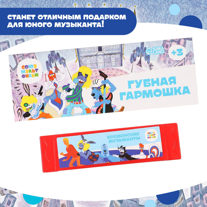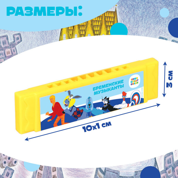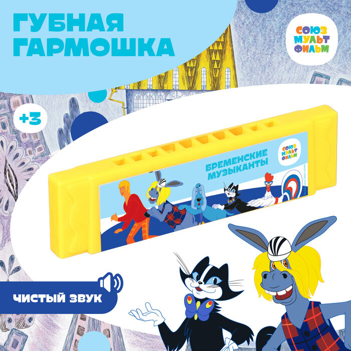 Губная гармошка "Бременские музыканты",10 см, цвет микс, Союзмультфильм интересное: