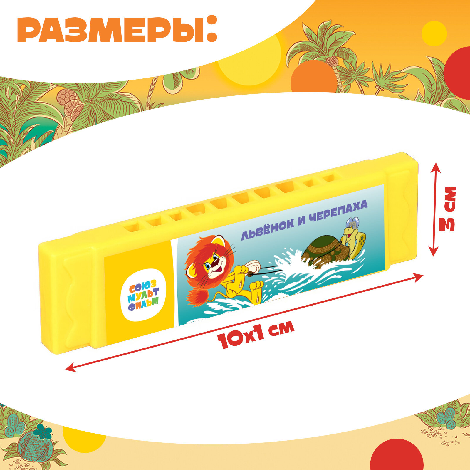 Губная гармошка "Львёнок и черепаха", 10 см, цвет микс, интересное: