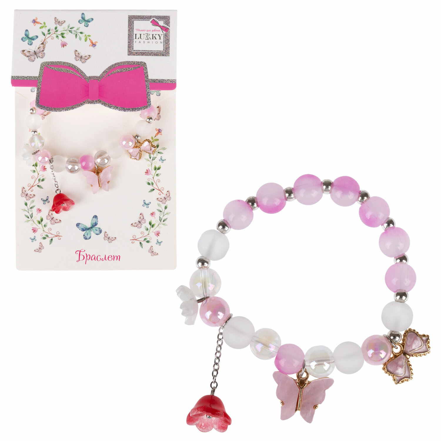 детский браслет Lukky Fashion матовая бирюза из полупрозрачн.бусин с 3 шармиками интересное: