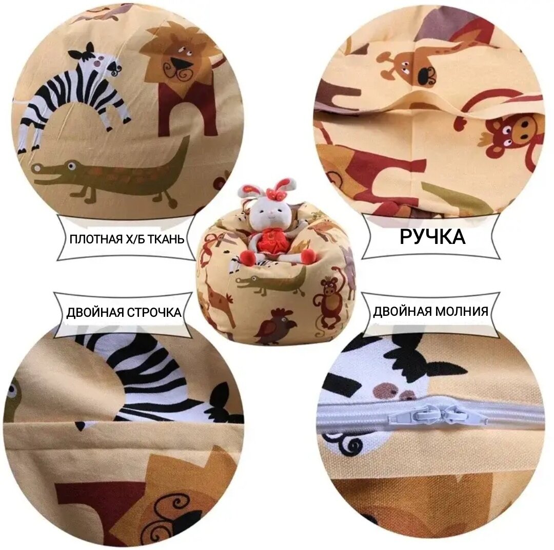 Купить Сумка чехол пуфик для хранения мягких игрушек, диаметр 61 см. Африка