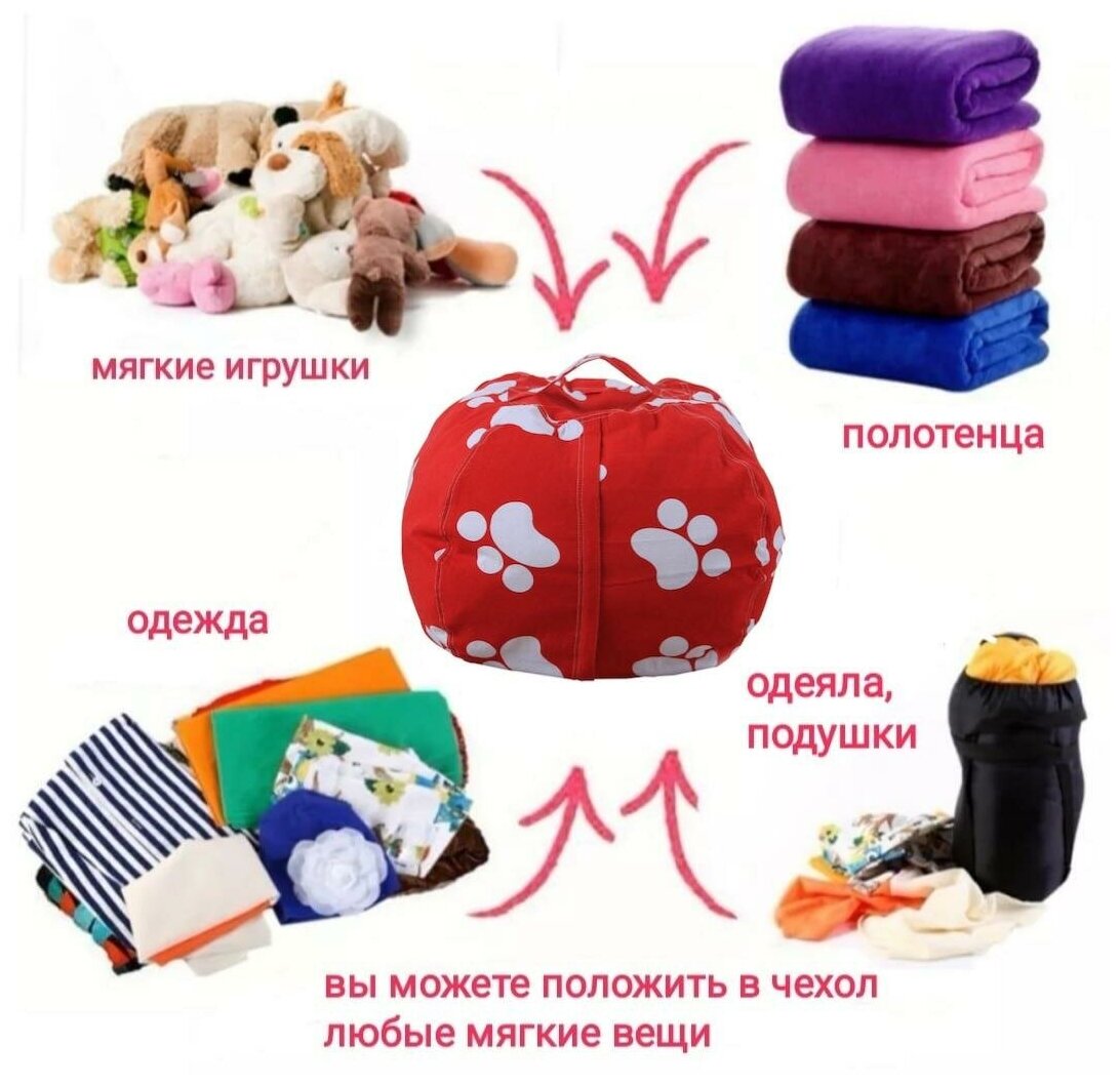Купить Сумка чехол пуфик для хранения мягких игрушек, диаметр 61 см. Пятки