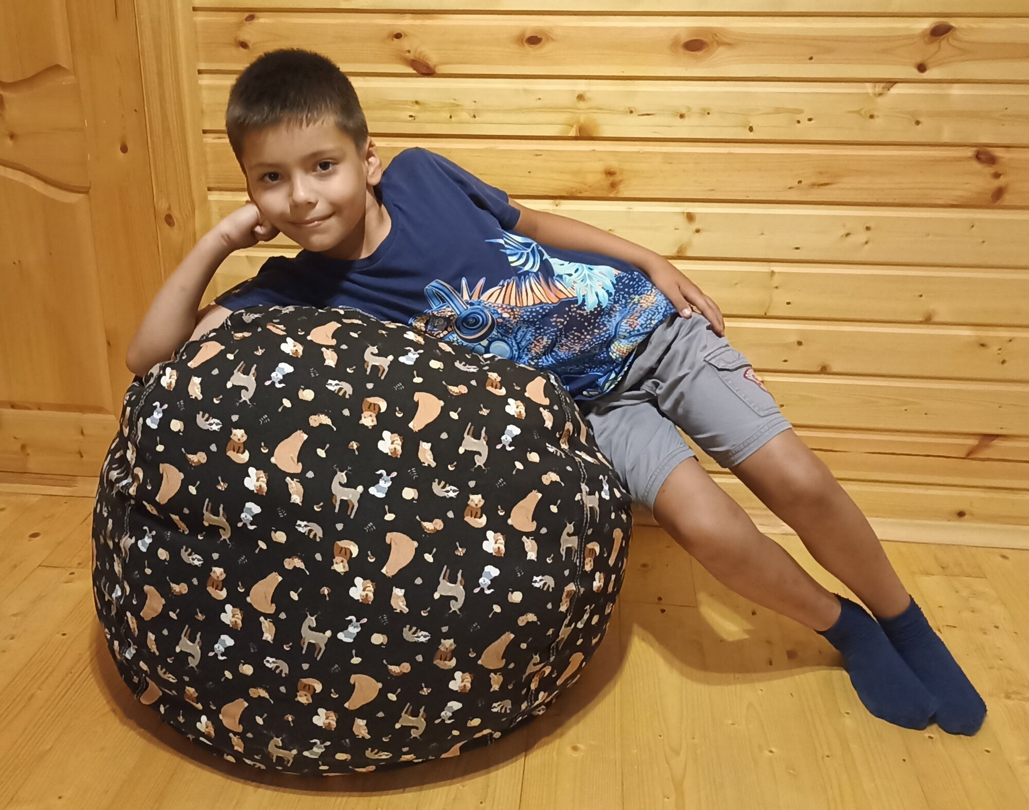 Сумка чехол пуфик для хранения мягких игрушек, диаметр 61 см. Лесные животные