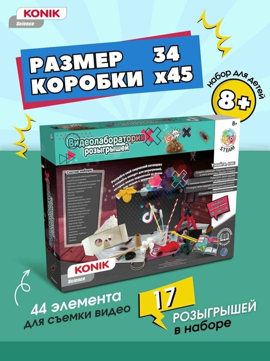 СохранитьKONIK Science Набор для творчества KONIK Science «Видеолаборатория розыгрышей» SSE1012 интересное: