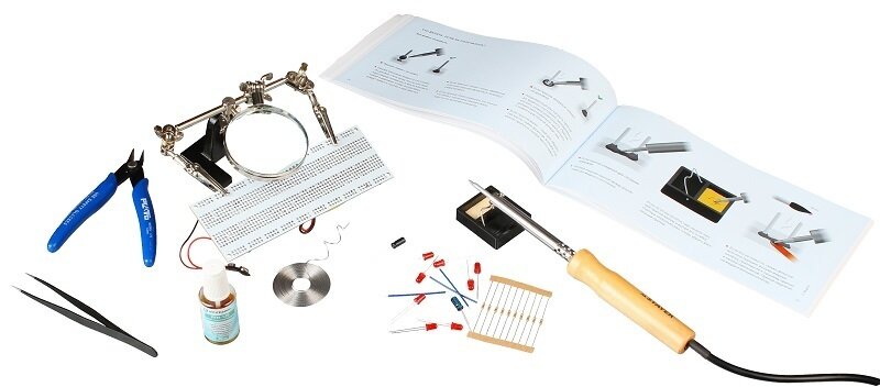 Базовый набор для изучения пайки "Паяльник в лапах: зверская пайка" (105 предметов) / DYI электронный конструктор для детей от 12 лет, 830 схем интересное:
