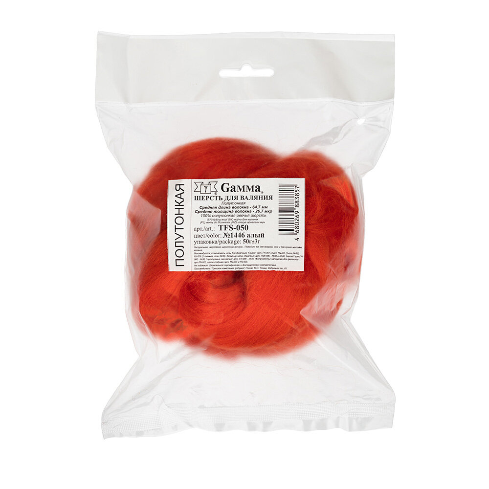 Шерсть для валяния "Gamma" TFS-050 100% полутонкая шерсть 50 г №1446 алый