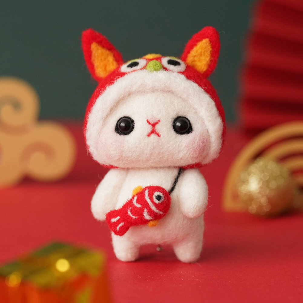 Набор для валяния, игрушка из шерсти Кот в костюме дракона, для творчества, для фелтинга