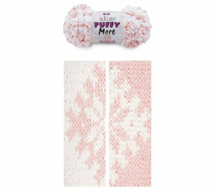 Купить Пряжа Alize Puffy More белый-пудра (6272), 100%микрополиэстер, 11.5м, 150г, 1шт