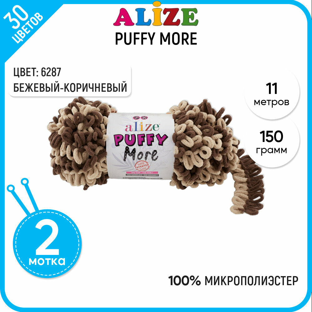 Купить Пряжа Alize Puffy More бежевый-коричневый (6287), 100%микрополиэстер, 11.5м, 150г, 2шт