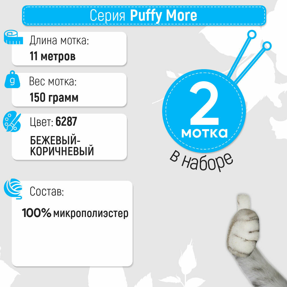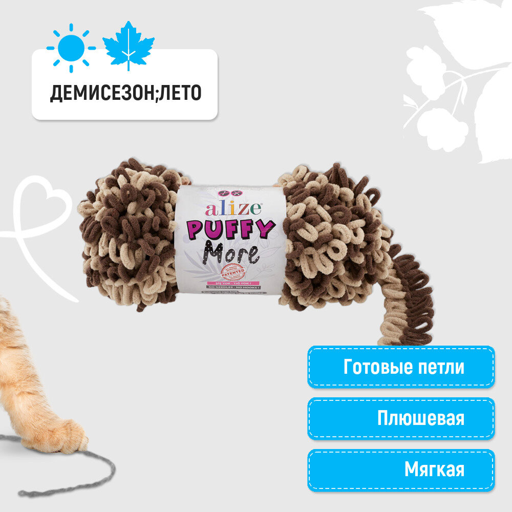 Пряжа Alize Puffy More экрю-табачный (6264), 100%микрополиэстер, 11.5м, 150г, 2шт