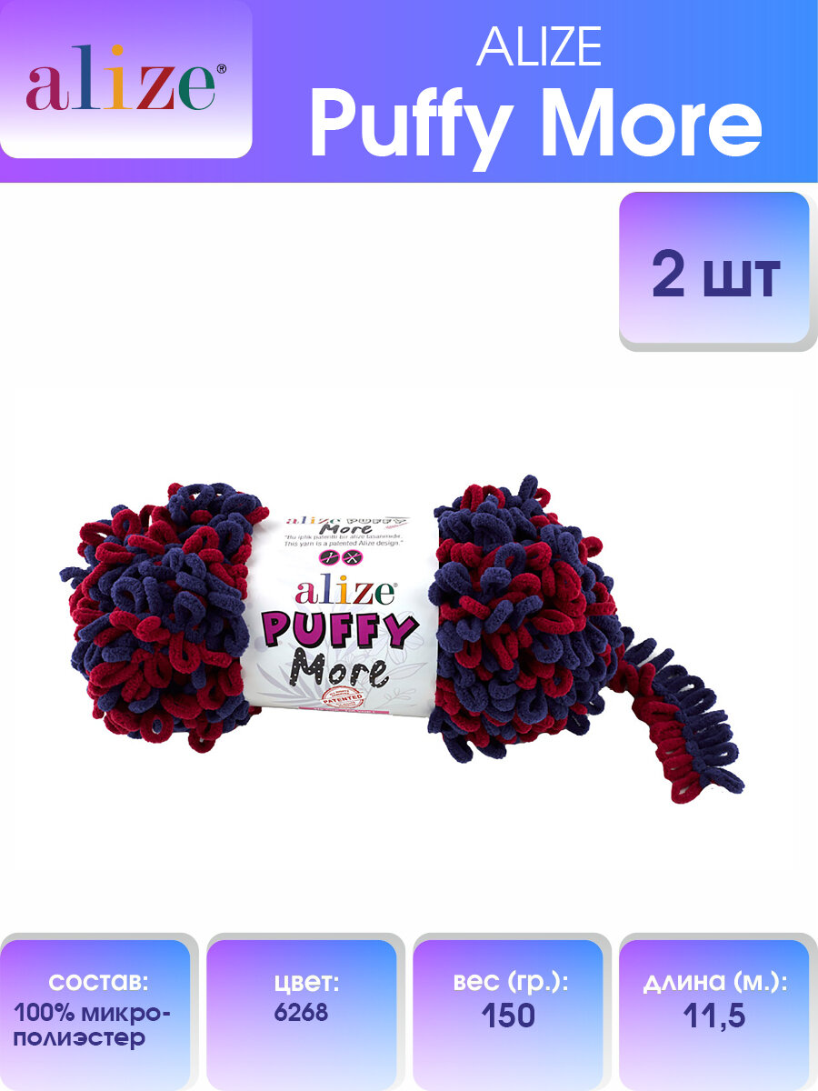 Пряжа Alize Puffy More вишня-ультрамарин (6268), 100%микрополиэстер, 11.5м, 150г, 2шт