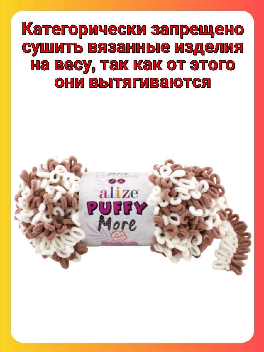 Пряжа Alize Puffy More экрю-табачный (6264), 100%микрополиэстер, 11.5м, 150г, 2шт