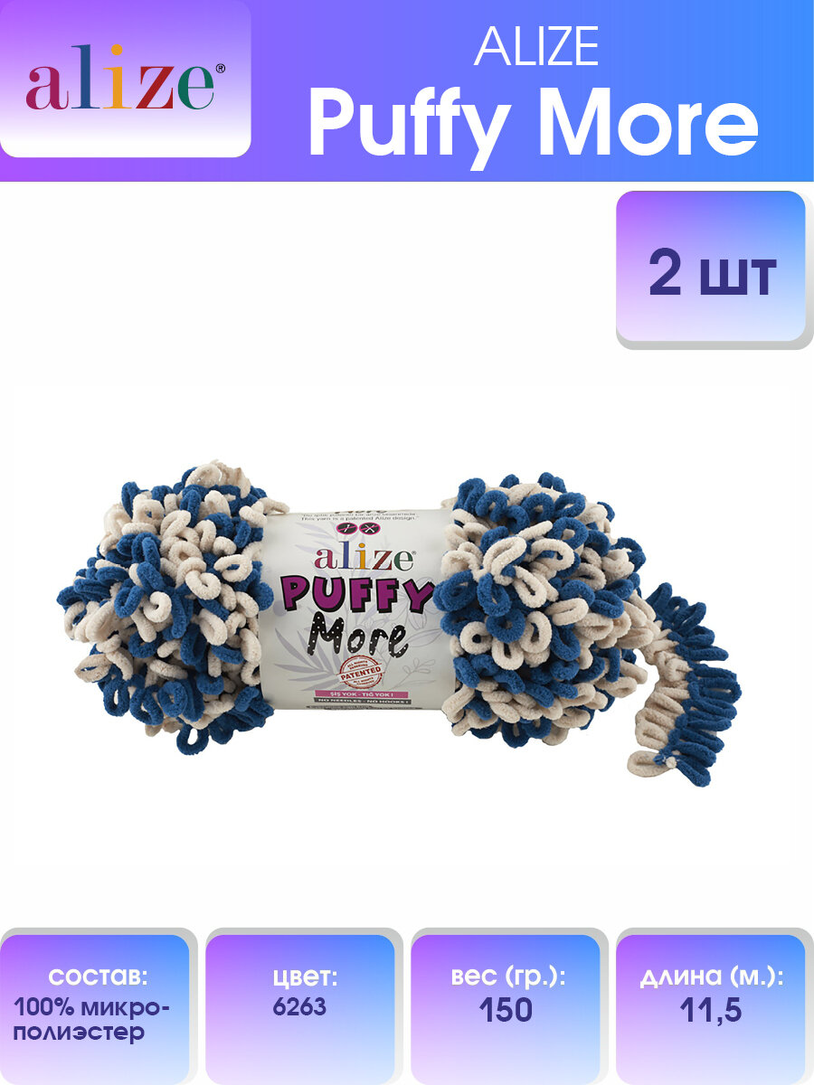 Пряжа Alize Puffy More экрю-морская волна (6263), 100%микрополиэстер, 11.5м, 150г, 2шт
