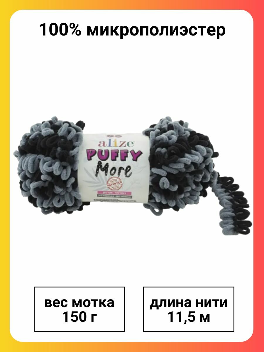 Пряжа Alize Puffy More серый-черный (6284), 100%микрополиэстер, 11.5м, 150г, 1шт