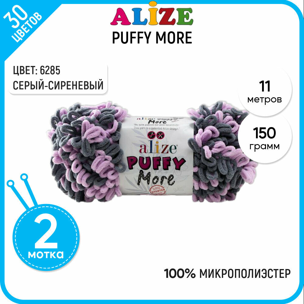 Купить Пряжа Alize Puffy More серый-сиреневый (6285), 100%микрополиэстер, 11.5м, 150г, 2шт
