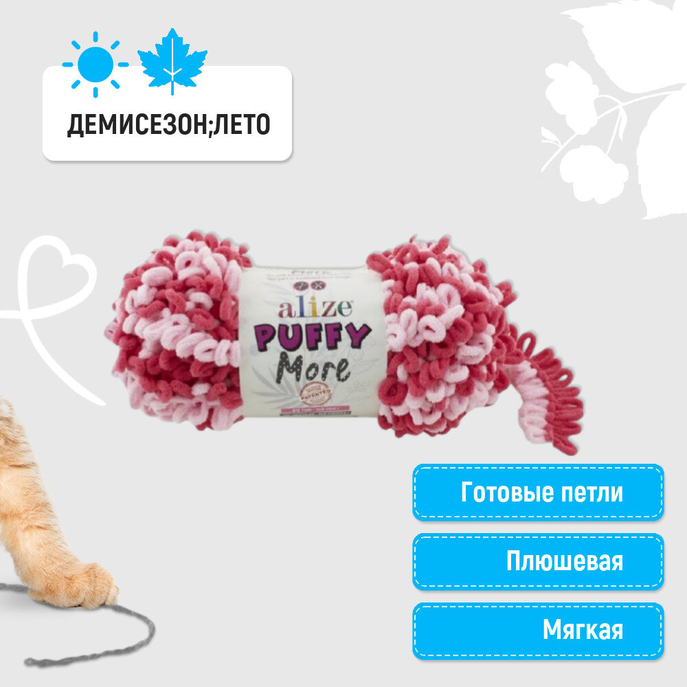 Пряжа Alize Puffy More розовый-вишневый (6278), 100%микрополиэстер, 11.5м, 150г, 2шт