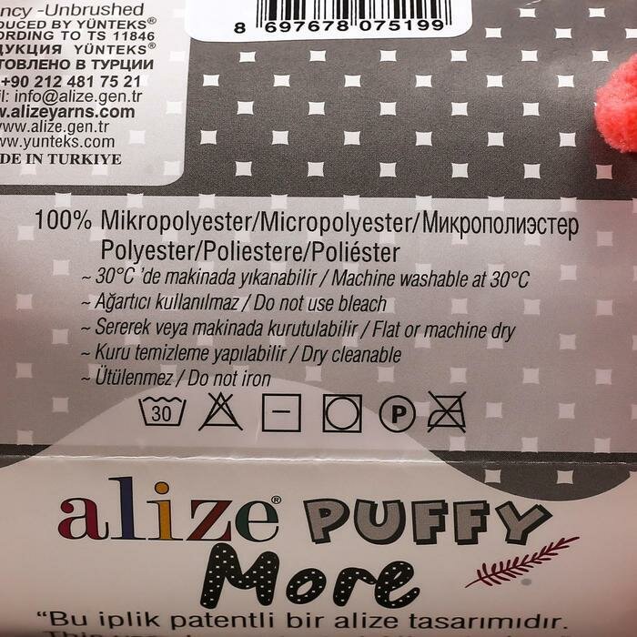 СохранитьПряжа Alize Puffy More персик-коралл (6275), 100%микрополиэстер, 11.5м, 150г, 1шт интересное: