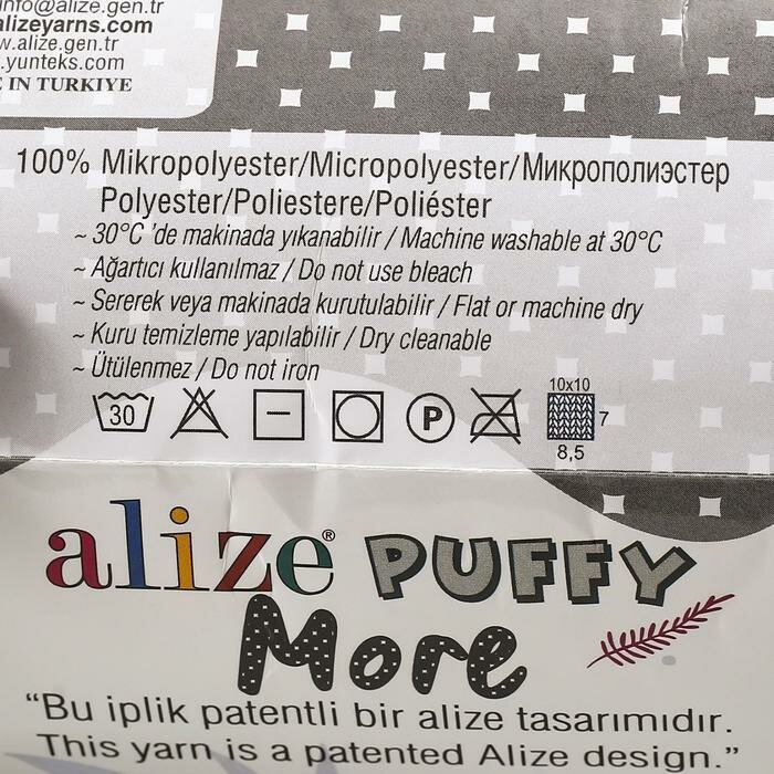 Пряжа для вязания ALIZE 'Puffy More', 150г, 11,5м (100% микрополиэстер) (6284), 2 мотка