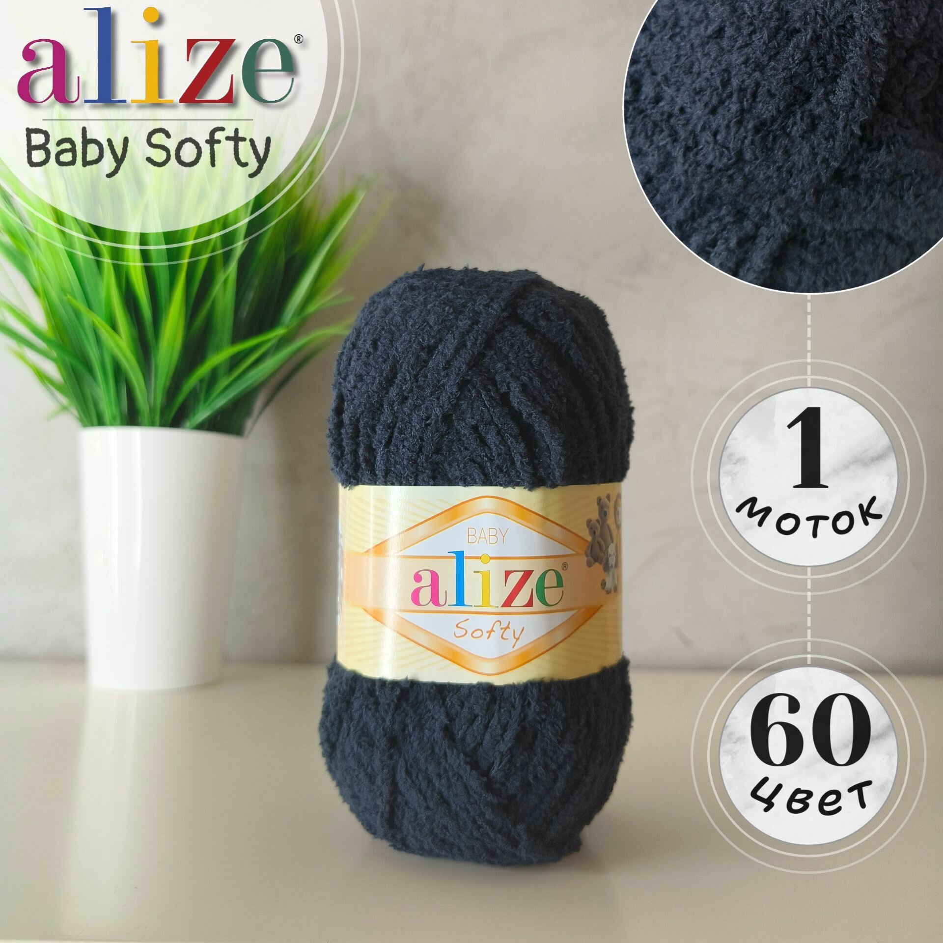 Пряжа плюшевая ALIZE SOFTY 60, 50 гр, 115 м, 5 шт (черный)