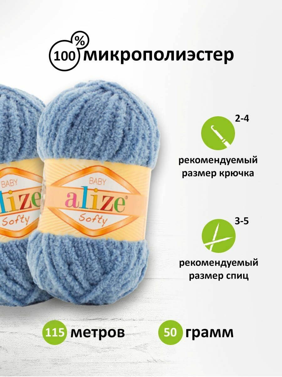 СохранитьПряжа Alize Softy джинсовый (374), 100%микрополиэстер, 115м, 50г, 5шт интересное: