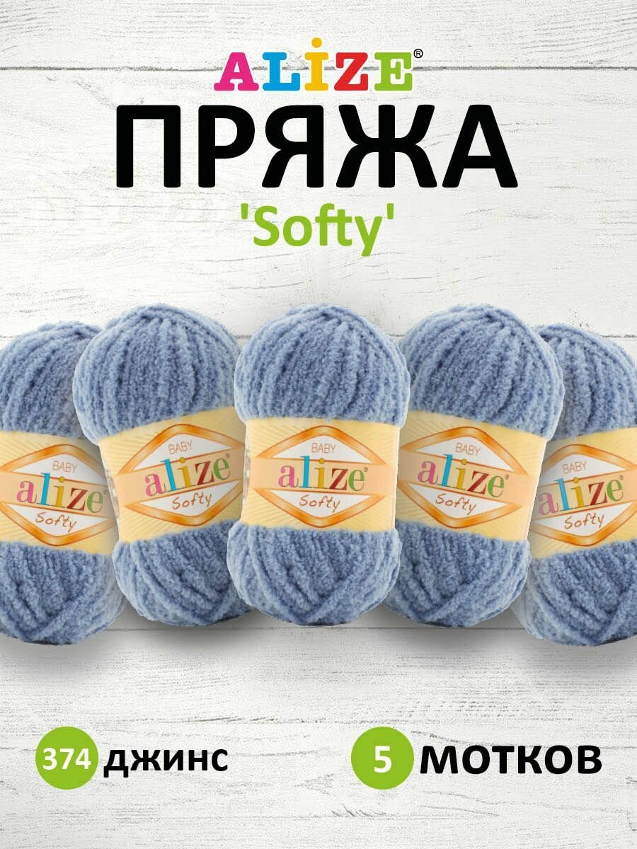 Пряжа ALIZE SOFTY, джинс - 374, 100% микрополиэстер, 5 мотков, 50 г, 115 м.