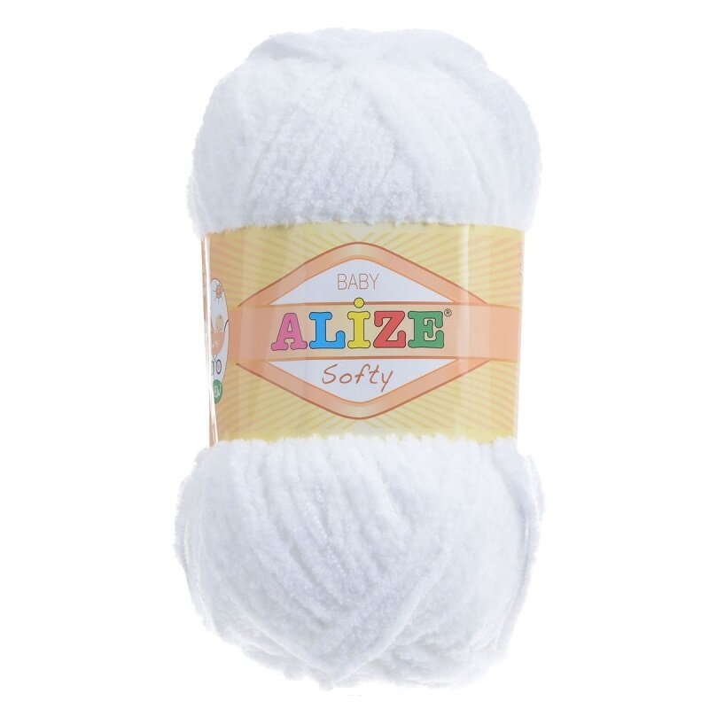 Пряжа Alize Softy (Ализе Софти) - 3 мотка Цвет: 55, Белый 100% микрополиэстер 50 г / 115 м