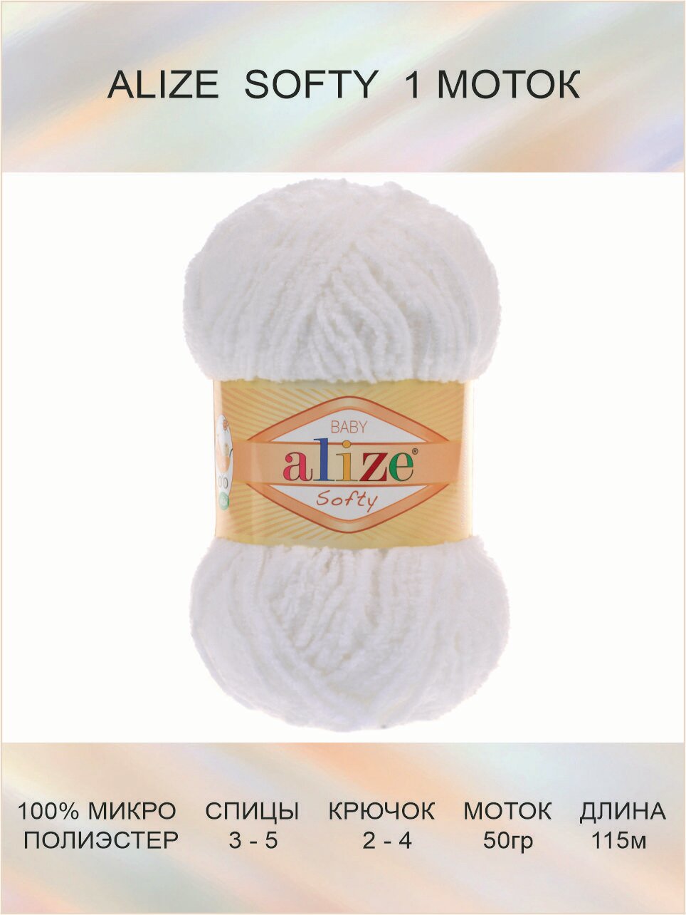 Пряжа ALIZE SOFTY, белый - 55, 100% микрополиэстер, 5 мотков, 50 г, 115 м.