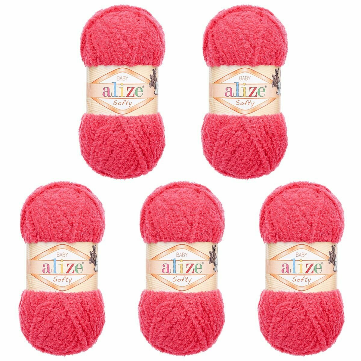 Пряжа Alize Softy красный (56), 100%микрополиэстер, 115м, 50г, 5шт