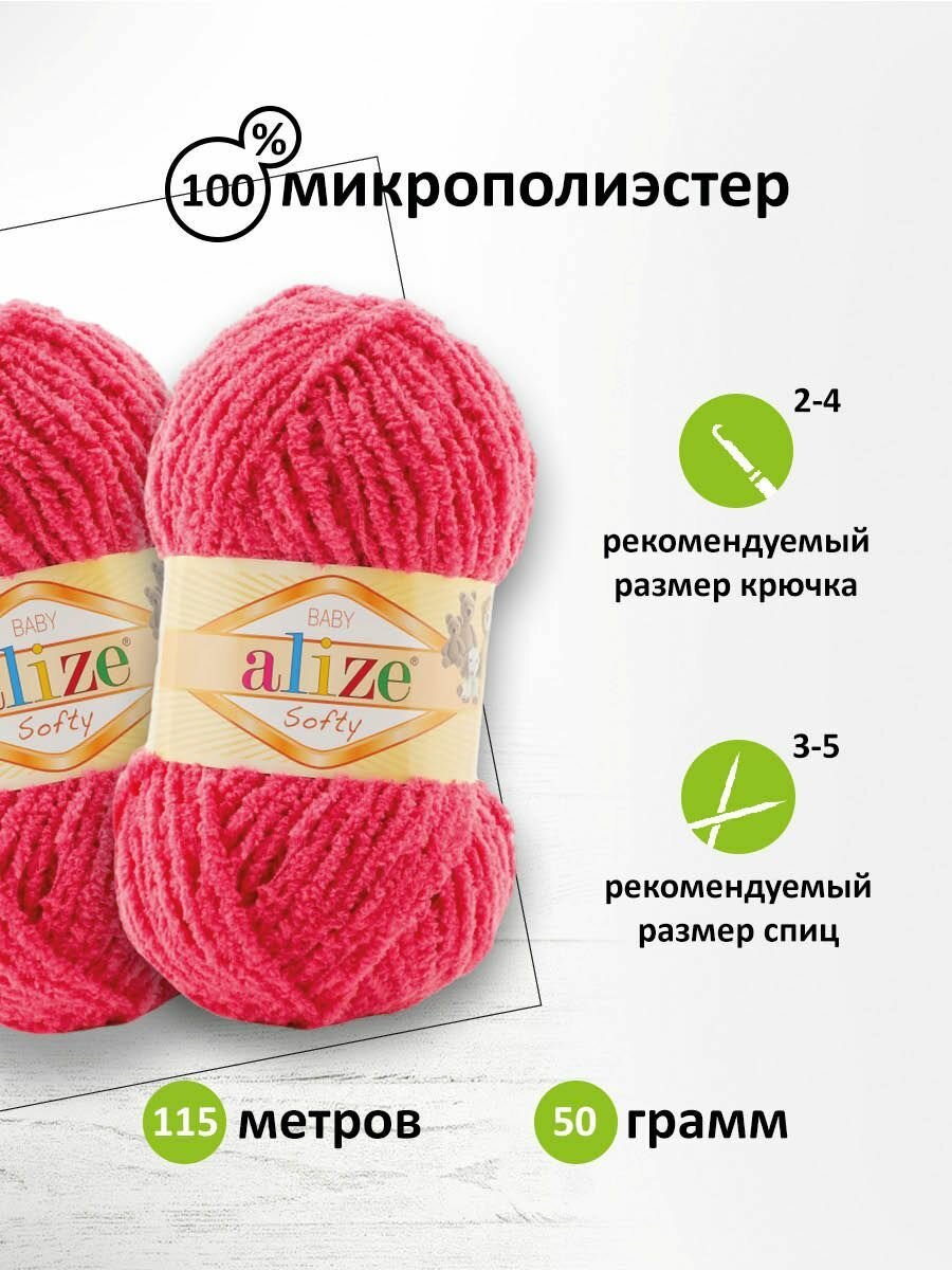 Пряжа Alize Softy Ализе софти Малиновый (798) 1 моток 50 г / 115 м (100% микрополиэстер)