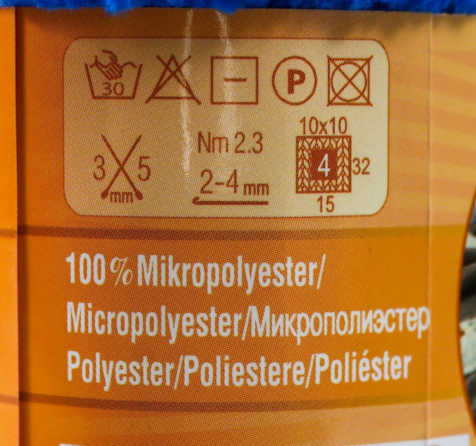 | Дополнительная информация | деликатная ручная стирка при 30°С или без отжима в стиральной машине, нельзя отбеливать; утюжить при температуре не более 120°С, сушить на горизонтальной поверхности |