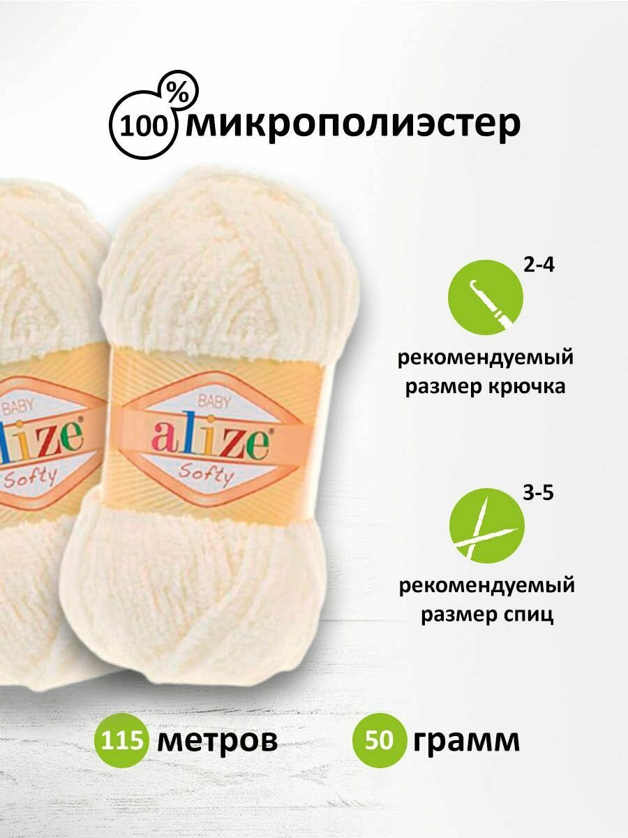 Пряжа Alize Softy светло-молочный (62), 100%микрополиэстер, 115м, 50г, 2шт