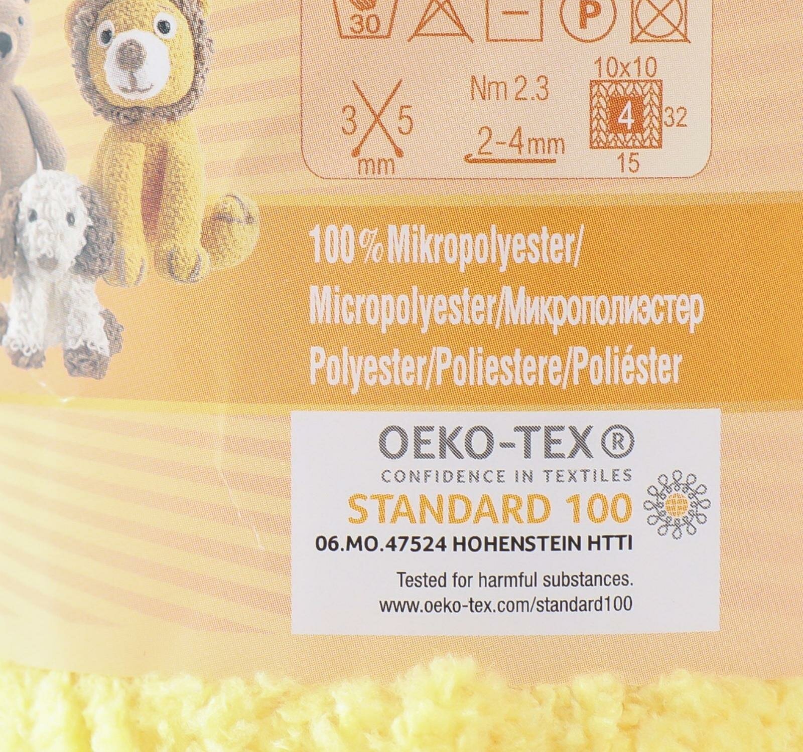 | Дополнительная информация | деликатная ручная стирка при 30°С или без отжима в стиральной машине, нельзя отбеливать; утюжить при температуре не более 120°С, сушить на горизонтальной поверхности |