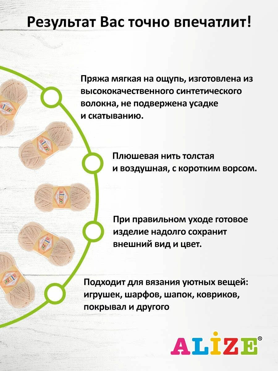 Пряжа Alize Softy (Ализе Софти) - 5 мотков Цвет: 216, Светло-коричневый 100% микрополиэстер 50 г / 115 м